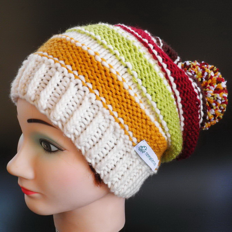Verschiedene Wollsorten und Textilgarne werden zu schönen Mützen, Schals und Loops verarbeitet.